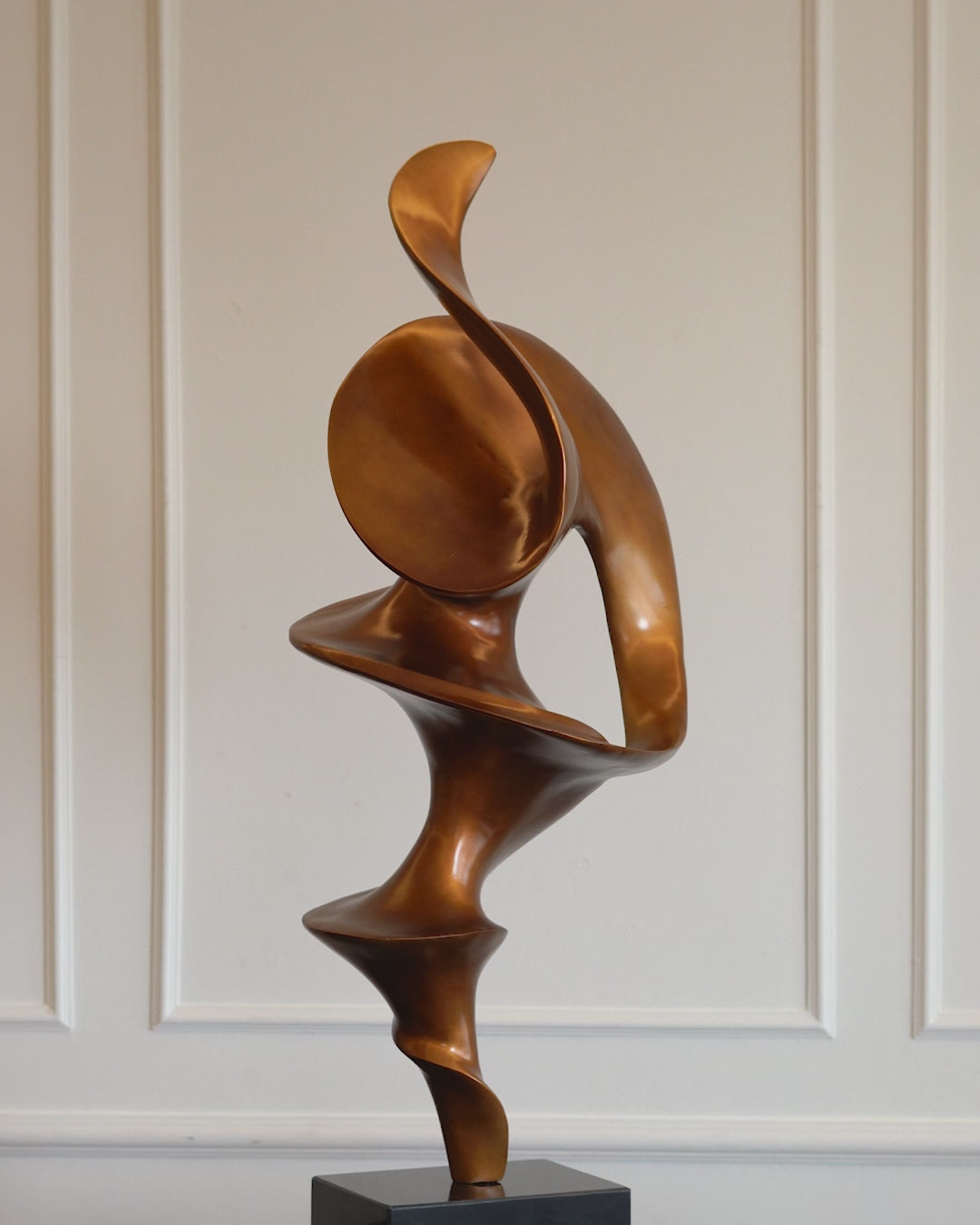 This sculpture embodies the elegance of fluid movement, its sinuous, organic form appearing to twist and flow effortlessly. Cast in a rich bronze finish with marble base, it exudes strength and softness, embodying the essence of perpetual motion.