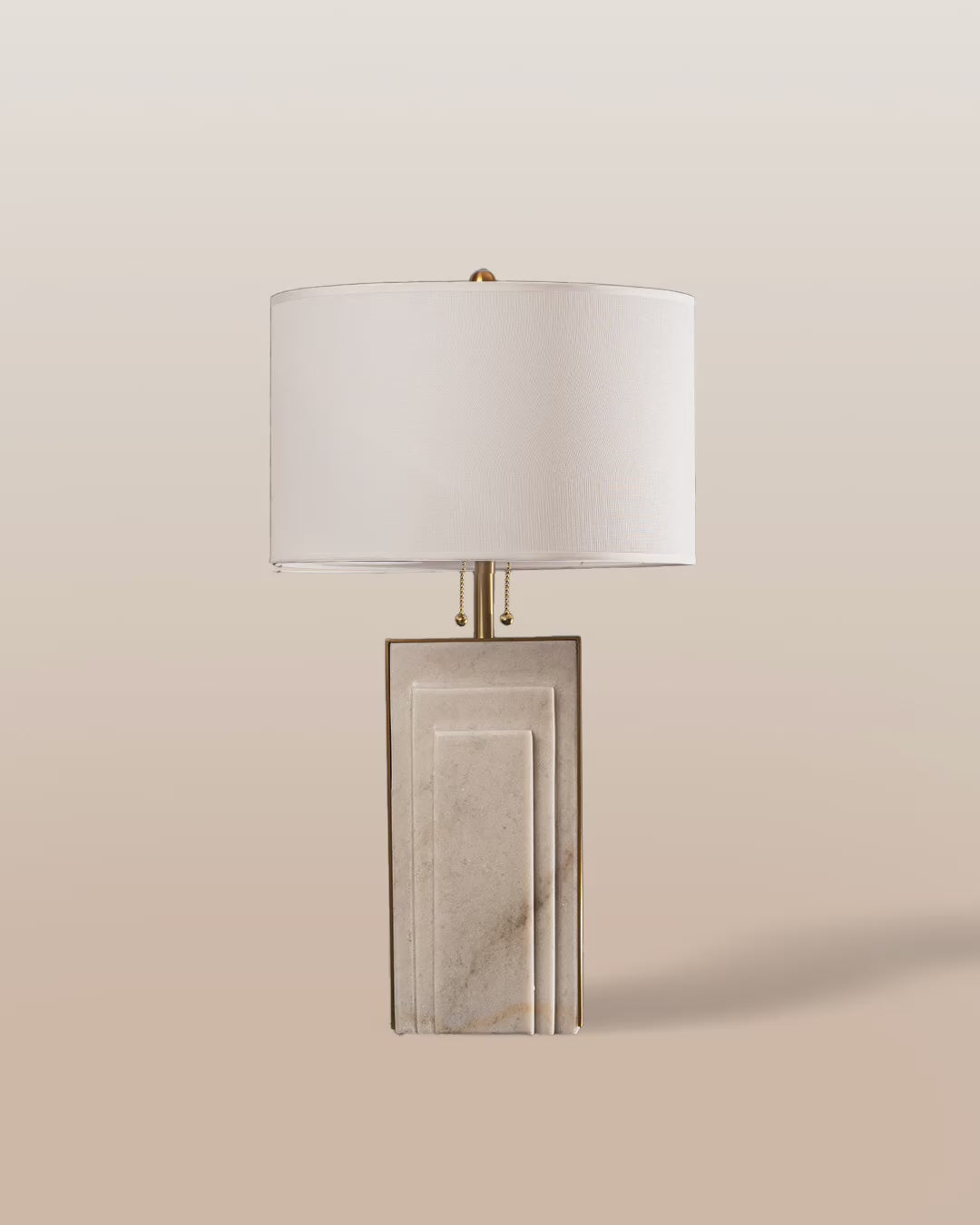 Marvelle Table Lamp is a symphony of statuario marble, carefully arranged in three distinct rectangular pieces of varying sizes. Each piece boasts its unique patterns and veining, creating a mesmerizing interplay of textures that adds a dynamic and visually captivating element to the design. The choice of statuario marble, renowned for its lustrous white surface and distinctive grey veining, exudes sophistication and refineme.